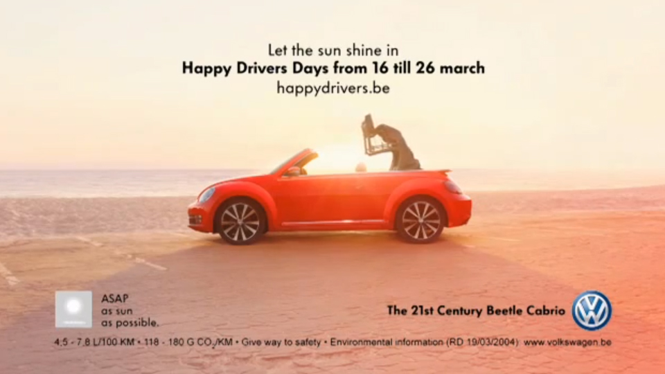 A televisão há muito tempo deixou de ser a primeira tela para algumas pessoas, mas em determinadas situações ela ainda mantém a preferência, com alguns avanços é claro. Literalmente. Com a televisão digital, é possível gravar seus programas favoritos (coisa que no século passado algumas pessoas faziam com o videocassete) e escolher o horário mais conveniente para assisti-los. Para o mercado publicitário, entretanto, surge um grande desafio: se as pessoas estão vendo programas gravados, elas têm a opção de avançar a imagem durante os comerciais. Na Bélgica, 1 em cada 3 telespectadores gravam seus programas, sendo que 90% pulam os comerciais. A solução da Volkswagen para apresentar o novo Beetle veio da DDB Bruxelas: o Slowmercial.