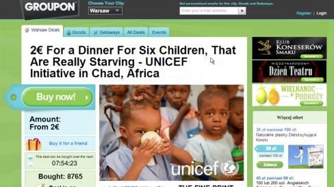 A Unicef costuma colecionar boas campanhas em torno de suas ações. Na semana passada, por exemplo, mostramos por aqui a criação da Forsman & Bodenfors mostrando que likes no Facebook não salvam a vida de ninguém. Agora, a lista cresce com Good Deal For Good, belíssima ideia da 180heartbeats e Jung V. Matt, da Polônia,aproveitou muito bem a parceria com o Groupon para combater a fome no Chade.