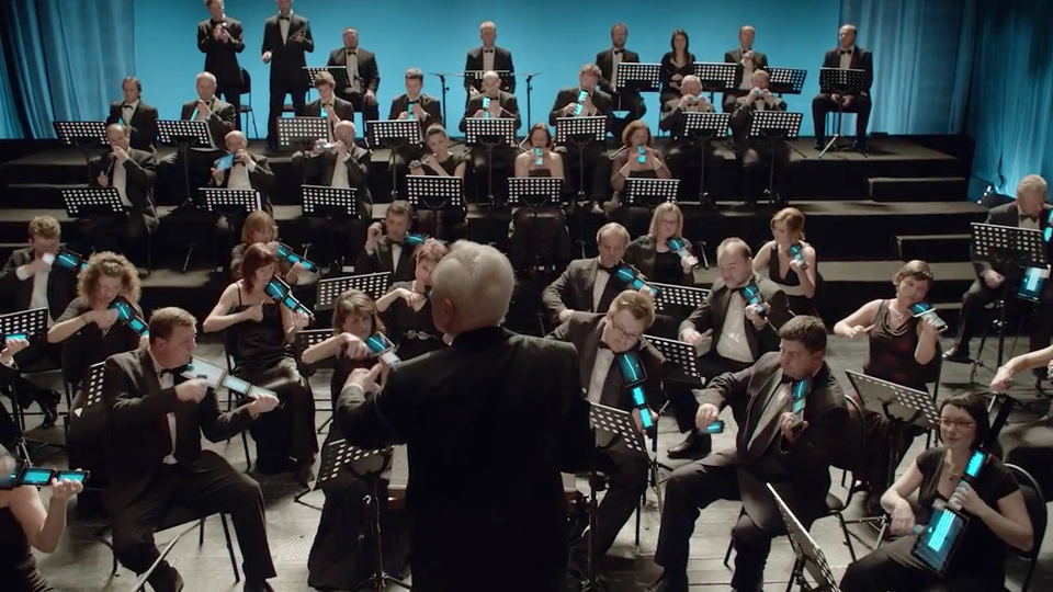 Você compra um ingresso para assistir a uma orquestra tocar, mas quando chega ao concerto percebe que há algo de errado. Os instrumentos musicais foram substituídos por… celulares. Na minha imaginação, foi assim que os criativos da B-Reel começaram a apresentar o conceito da ação Mobile Concert para seus clientes, o Hello bank!
