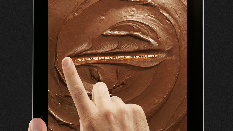 Essa nova da Fleischmann, para anunciar seus bolos com cobertura, também entra para a galeria de touchs surpreendentes. Segundo a marca, o tempo médio de interação com a publicidade superou 1 minuto.