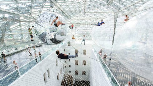Instalação In Orbit deixa o visitante flutuar por redes e nuvens