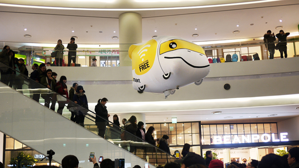 Como parte dessa estratégia, construíram balões controlados por controle remoto e com um roteador de Wi-Fi embutido, o Flying Store, soltos de forma inesperada por áreas centrais em Seoul, como estações de metrô, centros comerciais e áreas empresariais.