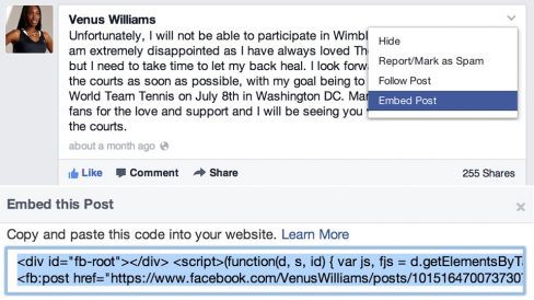 A rede social anunciou hoje a possibilidade de embedar posts públicos em sites e blogs. Cada publicação trará a opção no menu pop-up, e será exibida como no exemplo abaixo.