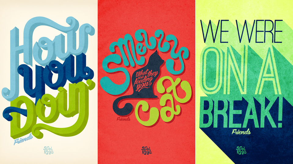 Rachel Krueger é uma designer que manda muito bem na combinação de tipografia e cultura pop. Seus projetos geralmente unem os dois elementos, seja em uma animação com suas falas favoritas de Sam em O Senhor dos Anéis – As Duas Torres, músicas que já se tornaram clássicas, desenhos da Pixar ou ainda o mundo dos super-heróis. Em seu projeto mais recente, entretanto, ela criou pôsteres com frases que marcaram a trajetória da série Friends.