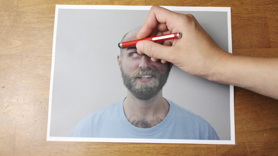 Uma caneta mágica que desenha cabelo e barba. É esse o efeito da técnica stop motion, mas aqui usada com fotos em sentido inverso.
