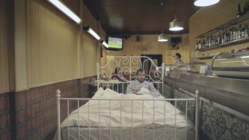 O personagem é um homem que simplesmente não consegue sair da cama – afinal, a parte mais difícil do dia é deixar para trás o conforto – e encara todas as atividades do dia praticamente colado à ela. No ponto de ônibus, no trabalho, no jogo de basquete com os amigos e até na balada, lá está o cara e sua cama.