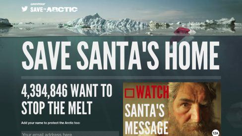 , onde as pessoas podem assinar uma petição cobrando medidas para salvar o Pólo Norte. Pode não ser uma ideia original, mas certamente é particularmente efetiva nessa época do ano.