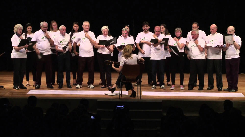 Um coral formado por 12 pacientes vítimas do cigarro, surpreendeu a plateia no MASP, que aguardava por uma apresentação do Coral da USP. O grupo cantou “All You Need is Love” e “She Loves You” dos Beatles, exibindo no final faixas com apelo anti-tabaco.