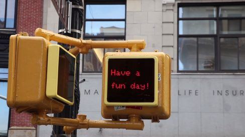 Assim, se o Pop Pop está feliz com as condições da via, ele mostrará mensagens como “Today is a great day – smile!”, “NYC is a lovely city with you in it” e “Have a fun day cause you’re awesome”.