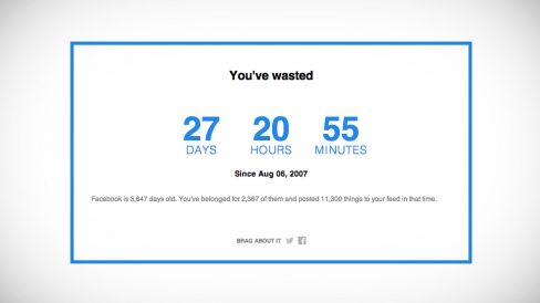A revista TIME resolveu comemorar os 10 anos do Facebook – que serão completados no próximo dia 4 de fevereiro – de uma maneira bem provocativa. Criou um aplicativo para calcular quanto tempo você já desperdiçou na rede social do Markinho.