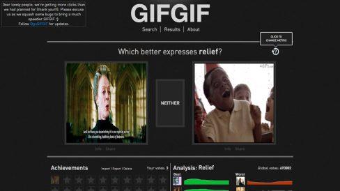 Assim, ao entrar no GIFGIF, a primeira coisa a ser feita é responder se os dois GIFs apresentados remetem claramente a uma determinada emoção.