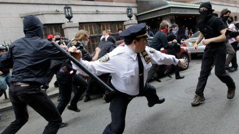 O pessoal do Occupy Wall Street também se movimentou, trazendo um razoável arsenal de truculência policial.