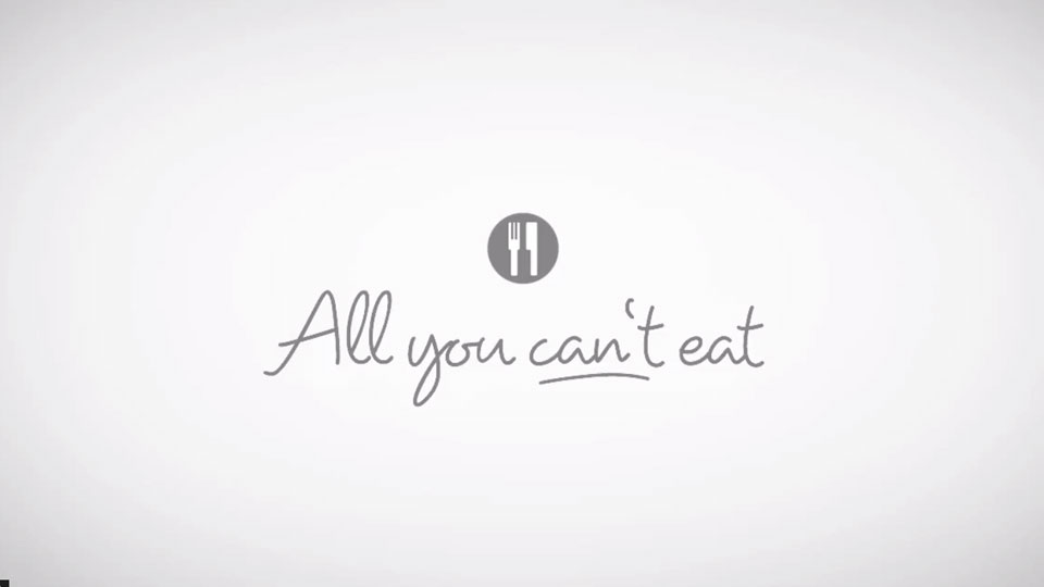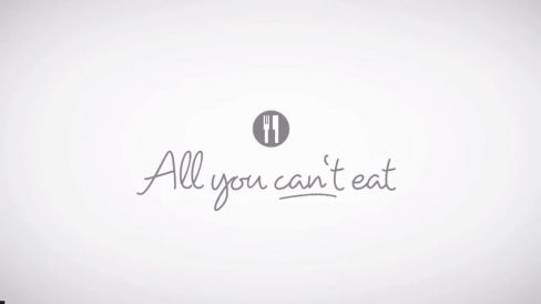A campanha ‘All you can’t eat’ trabalha exatamente com essa parte do seu prato que você provavelmente não vai aguentar, e que acabará no lixo.
