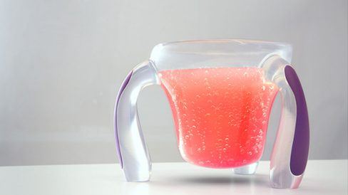 O resultado são canecas plásticas, com uma base levemente elevada para evitar a necessidade de apoios de copo, e que podem ser usadas em superfícies irregulares, já que os três apoios evitam que o recipiente seja virado. A nova versão também ajuda a economizar espaço na cozinha, já que as canecas são facilmente empilháveis.