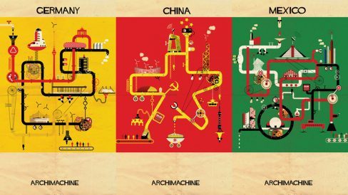 A gente já mostrou por aqui alguns dos projetos do ilustrador e arquiteto Federico Babina, que costuma fazer releituras de filmes e artistas, imaginando-os como obras arquitetônicas. Entre seus projetos mais recentes, está Archimachine, que transforma países em máquinas, misturando alguns conhecidos tesouros da arquitetura de cada um desses lugares.