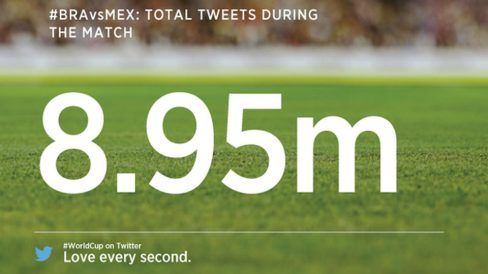 Com mais de 8,9 milhões de tuítes, o jogo entre Brasil e México desta terça-feira ganhou o título de segundo mais tuitado desta Copa do Mundo, logo atrás do número de tuítes gerados durante a disputa entre Brasil e Croácia, na abertura do mundial. A partida, que encerrou sem nenhum gol para ambos os lados, teve como ponto alto a defesa do goleiro mexicano Ochoa, em uma jogada que foi finalizada pelo jogador brasileiro Thiago Silva – o momento rendeu cerca de 243 mil tuítes por minuto.