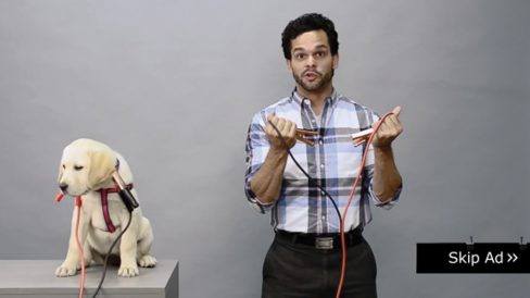 Foi nessa vibe que a agência norte-americana Nail criou o que seria um anúncio “impulável” – o personagem do comercial “pluga” um cachorrinho no que seria o espaço do botão de ‘skip ad’ e sugere que, ao clica-lo, você vai eletrocutar o bichano.