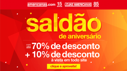 Foi dada a largada para o saldão de aniversário: são descontos de até 70% em diversas categorias. Produtos de informática, telefonia, eletrônicos, eletrodomésticos, games, moda e muuuito mais.