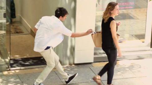 Um batedor de carteiras do bem presenteia mulheres sem que elas percebam