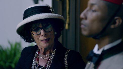 A personagem Coco Chanel aparece apenas em dois momentos, o que permite que Pharrell Williams brilhe ao máximo.