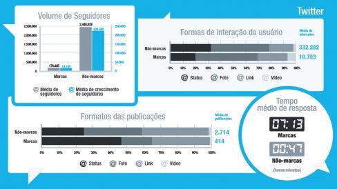 Em questão de tempo de resposta ou interação no Facebok, as marcas estão cada vez mais velozes – respondem, em média, em 5 minutos. Já no Twitter, a espera pode ser maior – em média, 7 horas e 13 minutos.