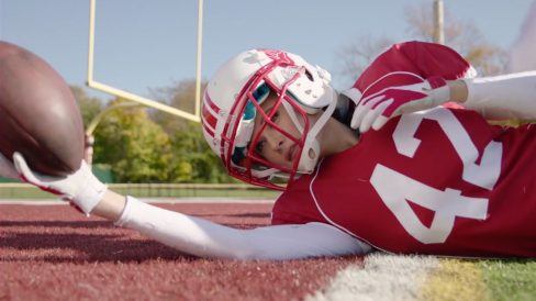 Em câmera lenta, vemos as garotas – devidamente uniformizadas e protegidas por capacetes – jogando o esporte favorito dos norte-americanos, com diversos touchdowns.
