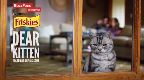 A parceria do BuzzFeed com a marca de ração para gatos Friskies continua indo super bem. Depois de divertidos vídeos na web, a série “Dear Kitten” estreia também na TV, em um anúncio de 1 minuto a ser veiculado durante o Super Bowl.