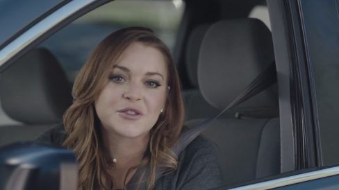 A conhecida má motorista Lindsay Lohan arrancou risos da audiência em um comercial para a Esurance durante o Super Bowl.