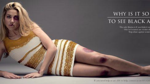 Um sensacional uso do meme do vestido que, assim como a violência doméstica, ninguém conseguia ver com as cores reais