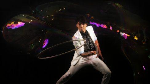 ”. O artista é especialista em performances com bolhas de sabão, com diversos truques incríveis. Ele cria bolhas dentro de bolhas, dá vida às bolhas com movimentos controlados, cria formas diferentes… Enfim, não tem como explicar muito, vale mais a pena ver o vídeo acima mostrando suas habilidades.