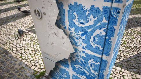 Em Portugal, o artista Diogo Machado pintou os famosos azulejos portugueses em uma caixa de luz, utilizando sombras para dar a impressão de que os azulejos eram parte de uma camada interna da caixa “rachada”. A caixa de luz, que você pode ver na foto que ilustra esse post e logo abaixo, é parte da série “Street Ceramic” do artista.