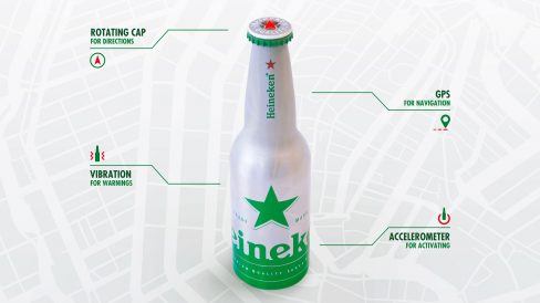 Na campanha “Bottle With a Mission” (Garrafa com uma missão, em tradução livre), a Heineken equipou garrafas especiais com um GPS, acelerômetro e uma tampinha giratória, que indicava a direção para a qual o ‘usuário’ da garrafa deveria caminhar.