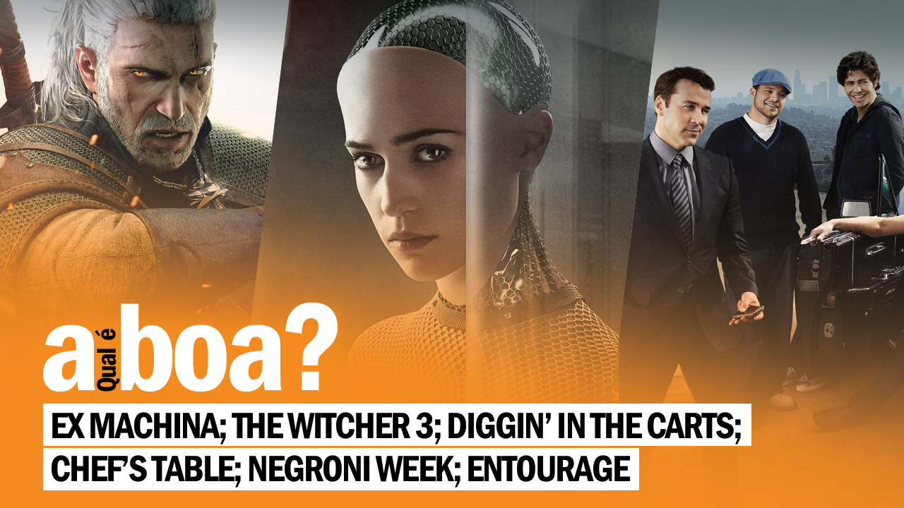 QUAL É A BOA? – Ex Machina; The Witcher 3; Diggin’ In The Carts; Chef’s Table; Negroni Week; Entourage