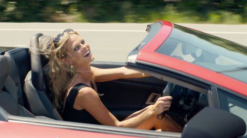 Uma das cenas clássicas do filme é a paquera na estrada, quando Clark começa a flertar com uma loira que dirige um carro conversível.