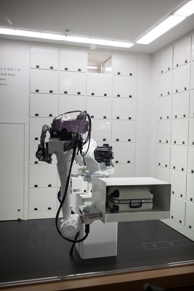 Há robôs recepcionistas – uma mulher que fala japonês e um velociraptor que fala inglês –, robôs que carregam as malas e outros que executam diversas tarefas, como servir café, pedir serviço de quarto ou entreter os hóspedes. As portas dos quartos também são inteligentes e se destrancam por meio de reconhecimento facial