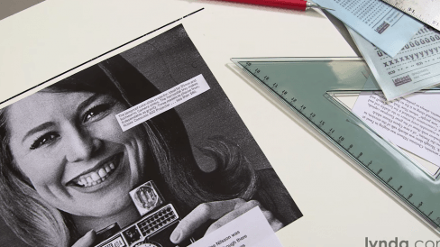 mostra como era feito o layout de um anúncio 30 anos atrás: com muito uso da régua, do estilete e da cola!