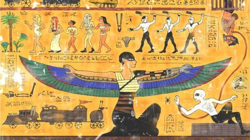Ilustração inspirada na arte do Egito Antigo sumariza o filme