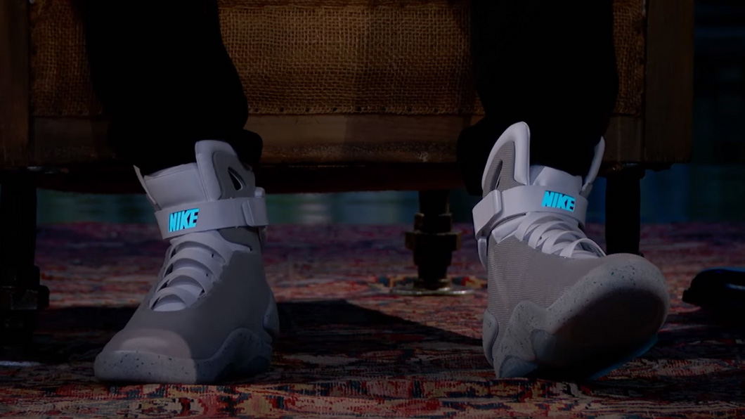 Assim como no filme, o Nike MAG traz a tecnologia que faz o calçado se amarrar sozinho. O ator já tinha exibido o primeiro par produzido pela Nike em vídeo publicado nas redes sociais, mas no programa de TV fica bem mais claro ver o funcionamento, com botões no calcanhar que apertar ou soltam o cadarço.