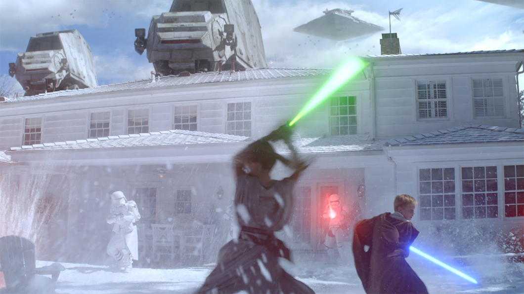 O vídeo alterna entre o mundo real e a imaginação das crianças, onde eles travam uma batalha épica com direito a AT-AT Walkers, Star Destroyers e muitos TIE fighters fazendo voos rasantes. Até o BB-8 marca presença, mas na forma de um boneco de neve ao fundo.