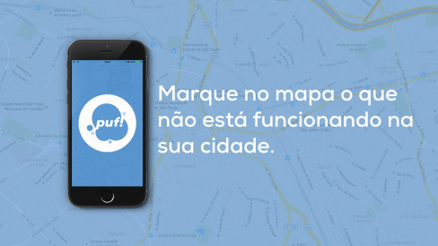 puf! é um app colaborativo de cidadania disponível para iOS e Android onde as pessoas marcam onde alguns serviços não estão funcionando de uma maneira rápida e simples.