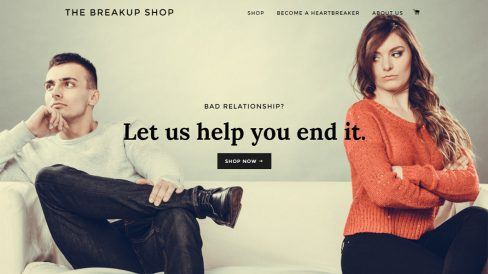 Lançado este mês, o Breakup Shop é um serviço online que você pode contratar para que terminem o seu namoro em seu nome. Você pode escolher entre mandar um email ou SMS padronizado, que custam ambos US$ 10, uma ligação, que custa 29 ou 39 dólares (dependendo da urgência) ou uma carta, que custa 20 ou 30 dólare (se for personalizada).