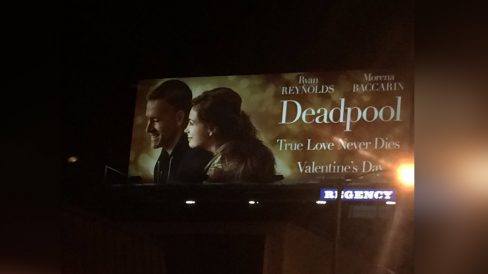 A nova iniciativa da Fox é tentar vender o filme como uma comédia romântica, aproveitando que a estreia será justamente na semana do Valentine’s Day nos EUA. Outdoors mostram Ryan Reynolds e Morena Baccarin como um casal feliz, e a assinatura “True love never dies”.