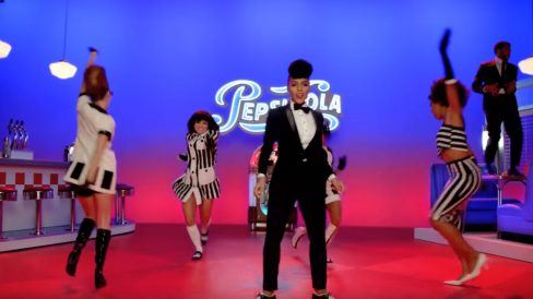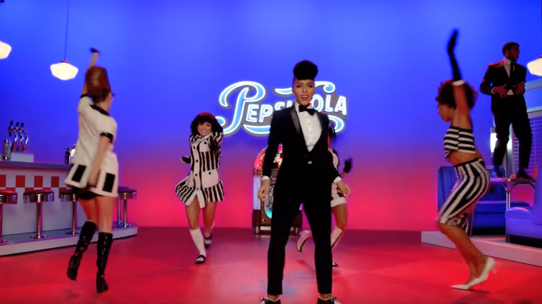Além de dominar esse período do jogo, a marca veiculará um comercial estrelado pela cantora Janelle Monáe, que passeia por três fases da música e da própria Pepsi dentro do logo.