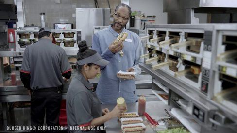 Normalmente quando marcas contratam celebridades para aparecerem em seus vídeos, são propagandas que passam bastante na TV ou na internet ou nos dois. Esse supostamente não foi o caso do vídeo acima, criado pelo Burger King, em que o rapper Snoop Dogg é visto orientando os funcionários, ao seu estilo, sobre os novos hot dogs da lanchonete.
