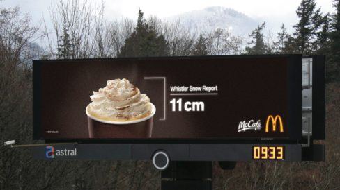 Para indicar a altura da neve, outdoor do McDonald’s usa o creme do café