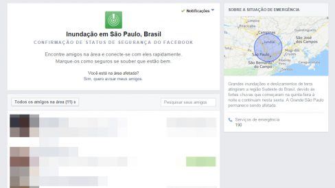 O Facebook ativou nessa sexta-feira a opção de “Safety Check” para usuários na região da grande São Paulo. Essa opção permite que usuários do Facebook na área afetada pelas inundações se marquem como seguros e, assim, avisem aos seus contatos e amigos pela rede social que estão fora de perigo. Quem se marcar como seguro automaticamente envia uma notificação aos amigos do seu status.