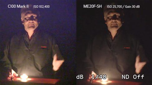 De acordo com Brent Ramsey, técnico da Canon, a ME20F-SH consegue um ISO alto desse jeito por causa do tamanho dos pixels do seu sensor, que embora tenha apenas 2,2 megapixels, cada um deles é 7 vezes maior do que os pixels de uma câmera Canon 1D X com 18,1 MP. Ele até demonstra como a câmera é capaz de capturar o seu rosto quando está sendo iluminado apenas pelo âmbar do pavio de uma vela recém-apagada.