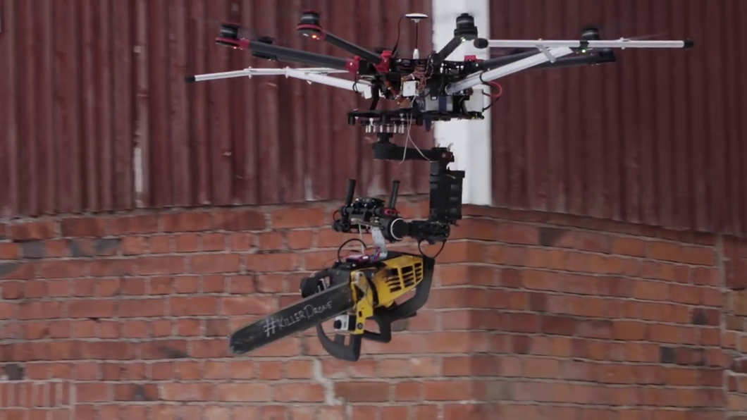 Drones domésticos podem ser usados para uma variedade de coisas. Entregas, captura de imagens e até busca de pessoas desaparecidas durante desastres. O que você vai ver acima não encaixa em nenhuma das categorias úteis. De fato, creio que ele inaugura uma categoria nova: a dos drones assustadores que contam com uma serra elétrica atrelada.