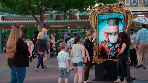 A publicidade exibia um streaming ao vivo do ator Johnny Depp, no papel do Chapeleiro Maluco, interagindo com os visitantes do lugar. Ele começava apenas piscando, dando a entender que o painel exibia apenas um vídeo em looping, mas logo a coisa ficava bem mais surpreendente.
