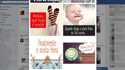 se depararam com uma mensagem pouco comum ao entrar na rede social. Na mensagem, o Facebook incentiva o usuário a compartilhar memes de sexta-feira, e ao clicar no link disponível ele recebia um mosaico de imagens para escolher.